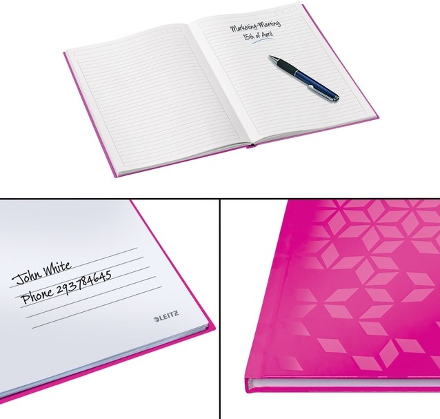 Notitieboek Leitz WOW A4 160 pagina's 90gr lijn roze