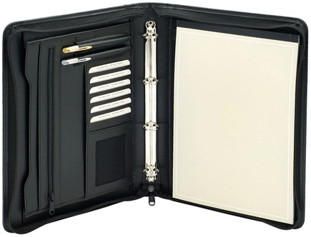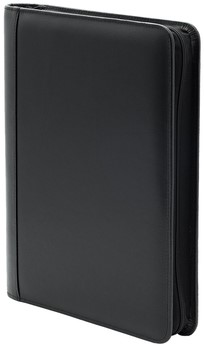 Schrijfmap van der Spek A4 4R 25mm O-mech rits rundleer met nerf zwart
