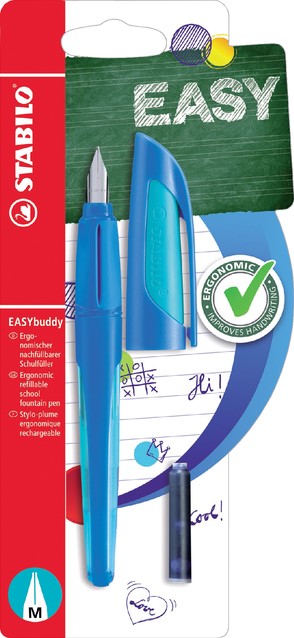 Vulpen STABILO Easybuddy rechtshandig medium donkerblauw/lichtblauw blister à 1 stuk