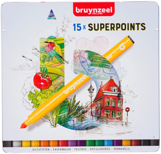 Viltstift Bruynzeel Creatives Superpoints blik à 15 kleuren