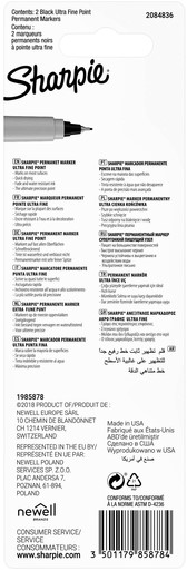 Viltstift Sharpie rond ultra fijn zwart blister à 2 stuks