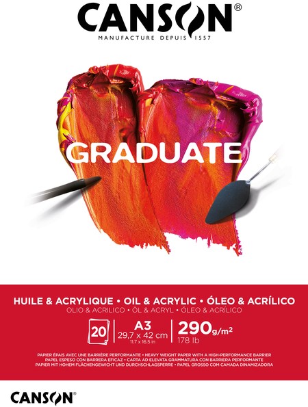 Schilderpapier Canson Graduate Oil & Acrylic 20vel 290gr A3 natuurlijk wit
