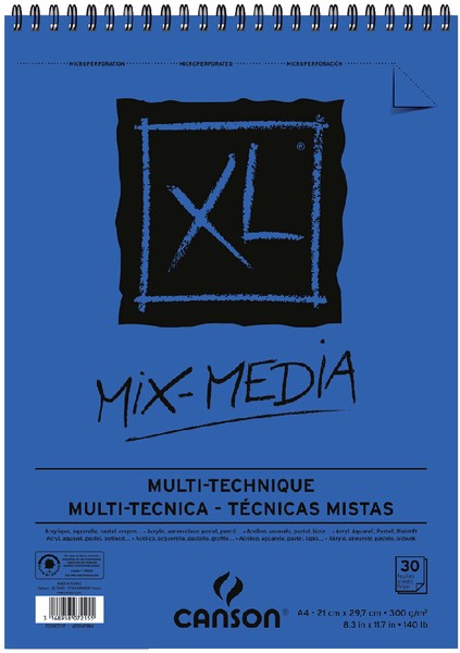 • Aan de korte zijde gespiraleerd album Canson XL Mix Media (300g/m².).