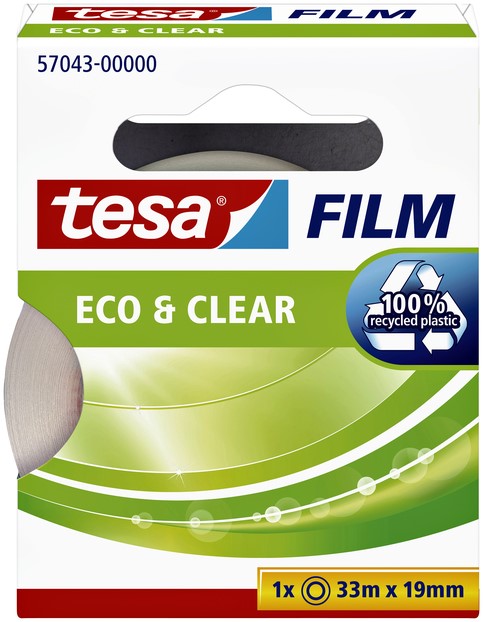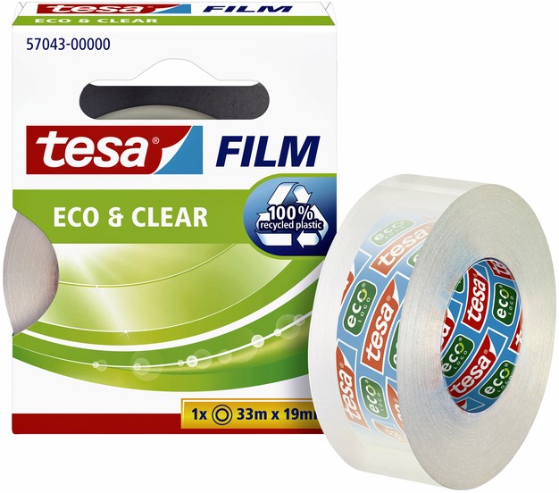 • tesafilm® eco & clear is een milieuvriendelijke en vrijwel onzichtbare tape die gerecycleerde materialen combineert met hoogwaardige prestaties.
