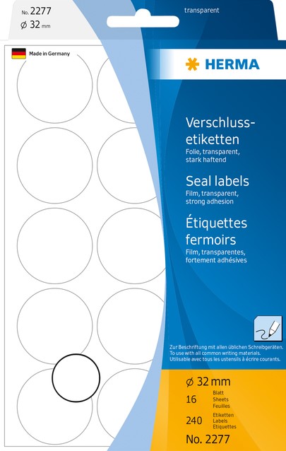 Etiket HERMA 2277 rond 32mm transparant 240 stuks