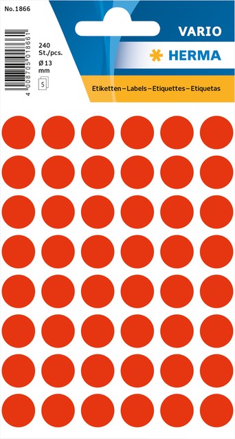 Etiket HERMA 1866 rond 12mm fluor rood 240 stuks