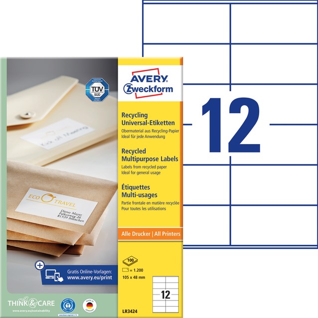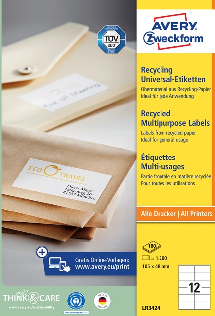 Etiket Avery LR3424 105x48mm recycled wit 1200 stuks