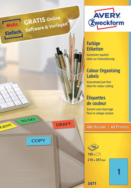 Etiket Avery 3471 210x297mm A4 blauw 100 stuks