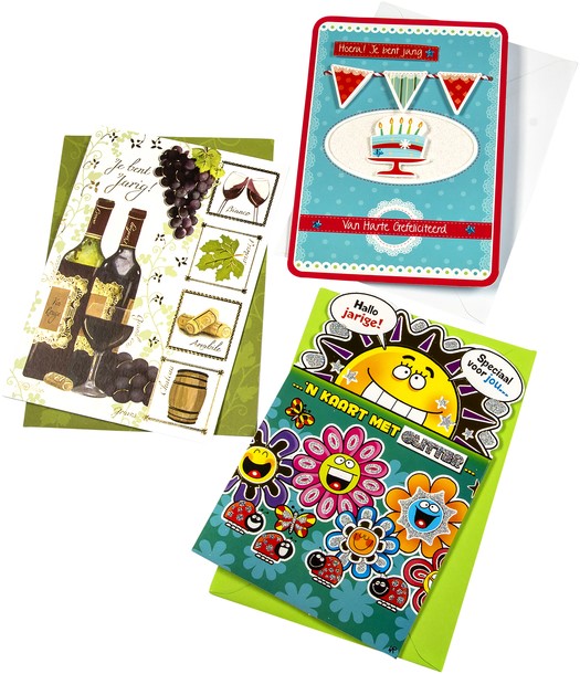 Wenskaart Paperclip verjaardag navulset à 12 stuks