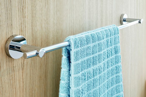 • Het aan de muur bevestigen van de zelfklevende tesa® Smooz handdoekhouder is eenvoudig zonder te boren.