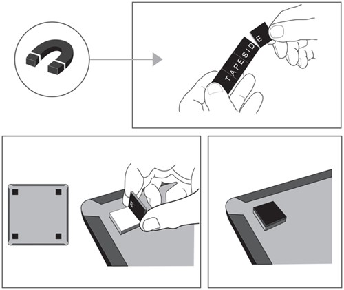 • Zelfklevende pads en magneten voor bevestiging aan de muur of op een metalen oppervlak.