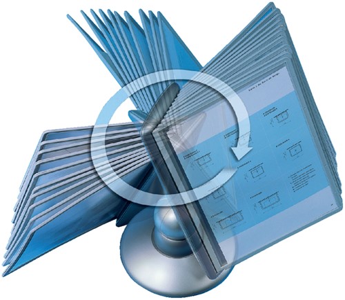 • Soepel draaiende tafelmodule met 10 zichtpanelen in A4-formaat.