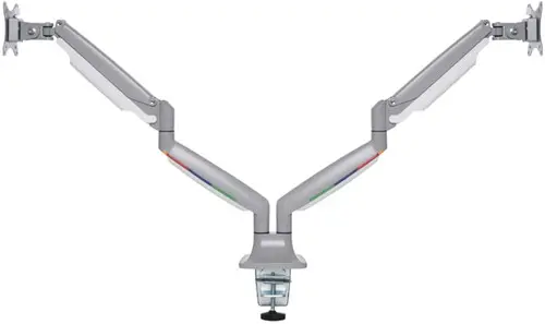 • De One-Touch Adjustable Arms met ingebouwde gasveer zijn eenvoudig in hoogte verstelbaar (170 mm-505 mm) en maken het mogelijk de monitor 180° te zwenken en te roteren, de kantelhoek met ± 90° te verstellen en de monitor probleemloos omhoog, omlaag, naar voren en naar achteren te bewegen met volledige flexibiliteit.
