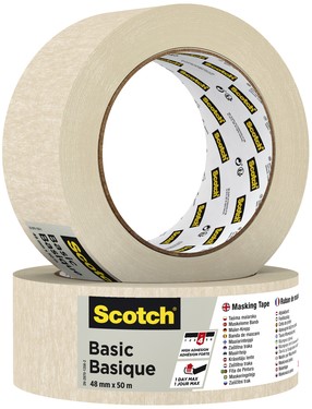 • Gebruik Scotch® Basic afplaktape als u een eenvoudige tape wenst, die tot 1 dag aan ondergronden blijft hechten en daarna gemakkelijk zonder lijmresten verwijderbaar is. Deze klassieke beige afplaktape scheurt u gemakkelijk met de hand af. Ideaal voor binnen met een middelsterke tot sterke hechting om muren voor het schilderwerk te prepareren.