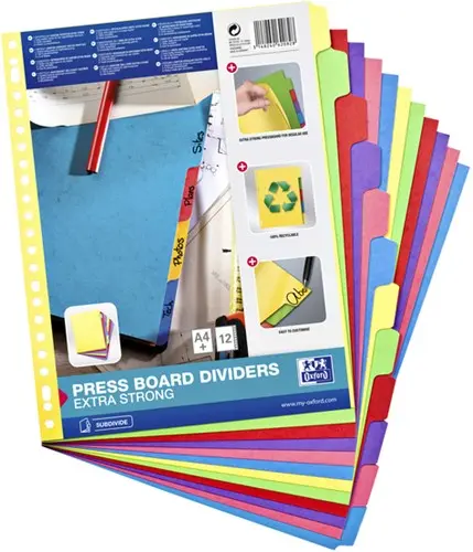 Tabbladen Oxford A4+ 23-gaats 12-delig karton kleur