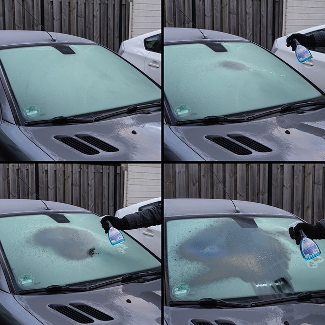 • Het product verstuiven op de bevroren ruit.