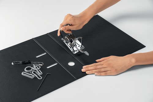 • In het oog springende, eersteklas ordner gemaakt van gerecyclede materialen die kunnen worden gedemonteerd voor volledige recycling.