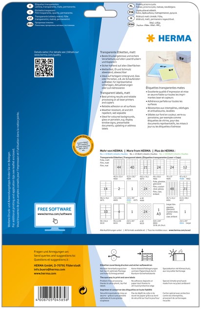 Etiket HERMA 4585 210x297mm weerbestendig transparant mat 10 stuks