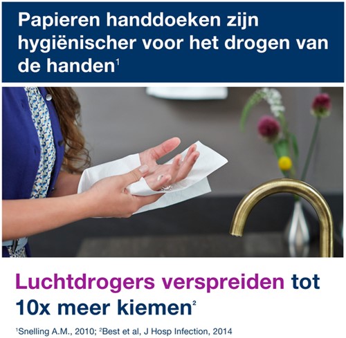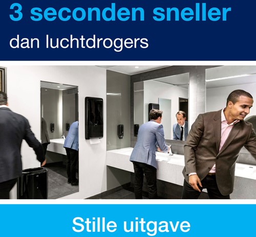• Middels de Easy to use systeem kan het snel en op elk moment worden bijgevuld en verbeter je bezoekersflow met het gepatenteerde Continu™ systeem dat Tork handdoeken uitgeeft in slechts 3 seconden.