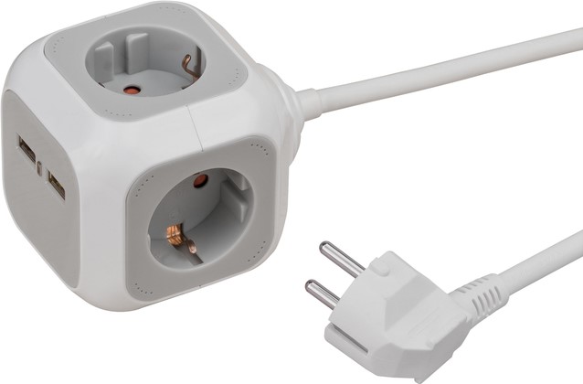 Stekkerblok Brennenstuhl 4 voudig inclusief 2 USB 140cm wit/grijs