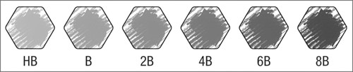 • Blik a 6 stuks in diverse hardheden: HB/B/2B/4B/6B/8B.