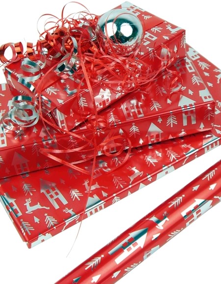 • Inpakpapier met een metallic afwerking in kerstsfeer.