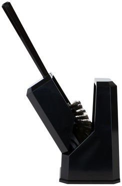• De Cleaninq toiletborstelgarnituur - zwart staat garant voor optimale hygiëne en een stijlvolle uitstraling in je toilet of badkamer. Dit gesloten, vierkante model houdt de borstel netjes uit het zicht en voorkomt onaangename geurtjes. Je kunt het garnituur eenvoudig staand plaatsen of aan de muur bevestigen – precies zoals jij dat wilt. De onderzijde is uitneembaar voor een grondige schoonmaakbeurt, en met een simpele druk op de zijclips verwijder je moeiteloos de voorklep. De stevige borstel met zwart kunstvezel zorgt voor een doeltreffende reiniging. Gemaakt van duurzaam kunststof in een moderne, zwarte kleur. Kenmerken: