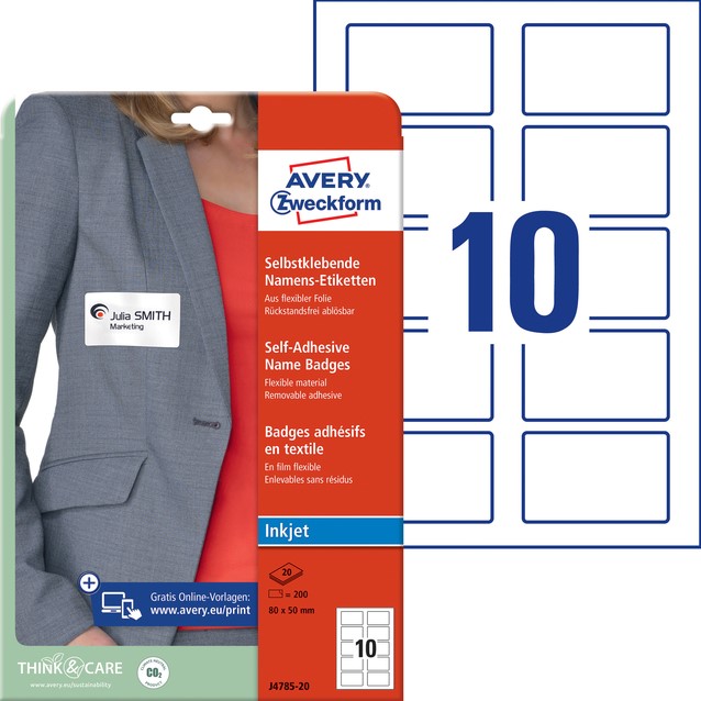 Naambadge etiket Avery J4785-20 80x50mm wit 200 stuks