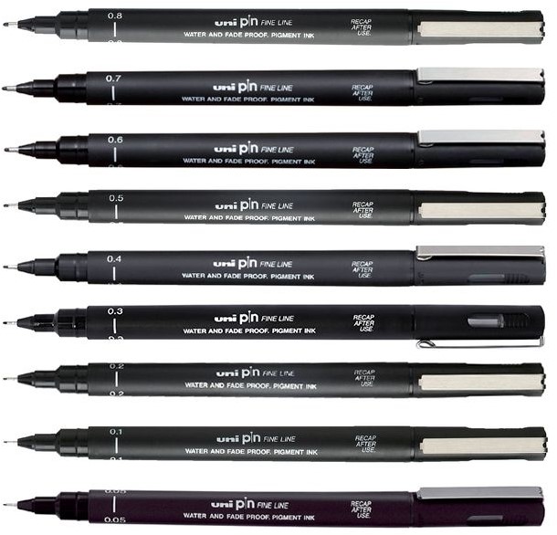 Fineliner Uni-ball Pin ASP009 set à 5 breedtes zwart