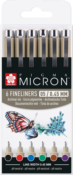 Fineliner Sakura Pigma Micron 05 basic set 6 kleuren