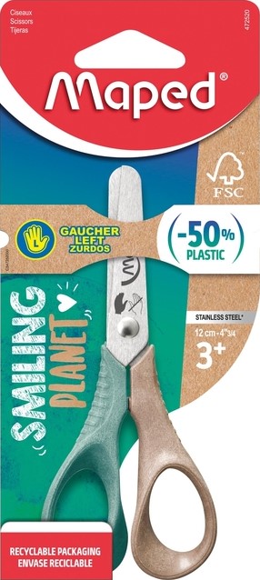 Schaar Maped Smiling Planet 12cm links display à 10 stuks assorti