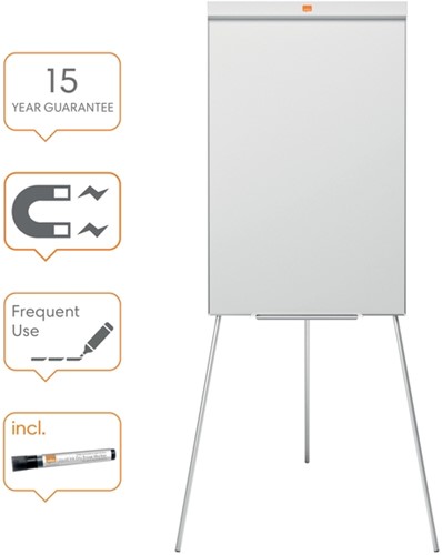 • De stalen flipover met driepootstatief heeft een modern, onopvallend en smal frame waardoor de ruimte van het bord wordt gemaximaliseerd, met de ruime pennengoot geplaatst onder het bord zonder de schrijfruimte te blokkeren. Het driepootstatief kan in hoogte worden aangepast of worden ingetrokken om het bord op te bergen of te verplaatsen. Magnetisch whiteboardoppervlak met stalen oppervlakte biedt een verhoogde uitwisbaarheid.